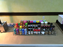 The 2 liters of soda are over by the ice and the chips are on the table with the rest of the snacks. The delicious veggie and fruit trays are on display. Oh boy, what about the salads? Well, we've got Antipasto, Greek, Tossed and Julienne party salads.